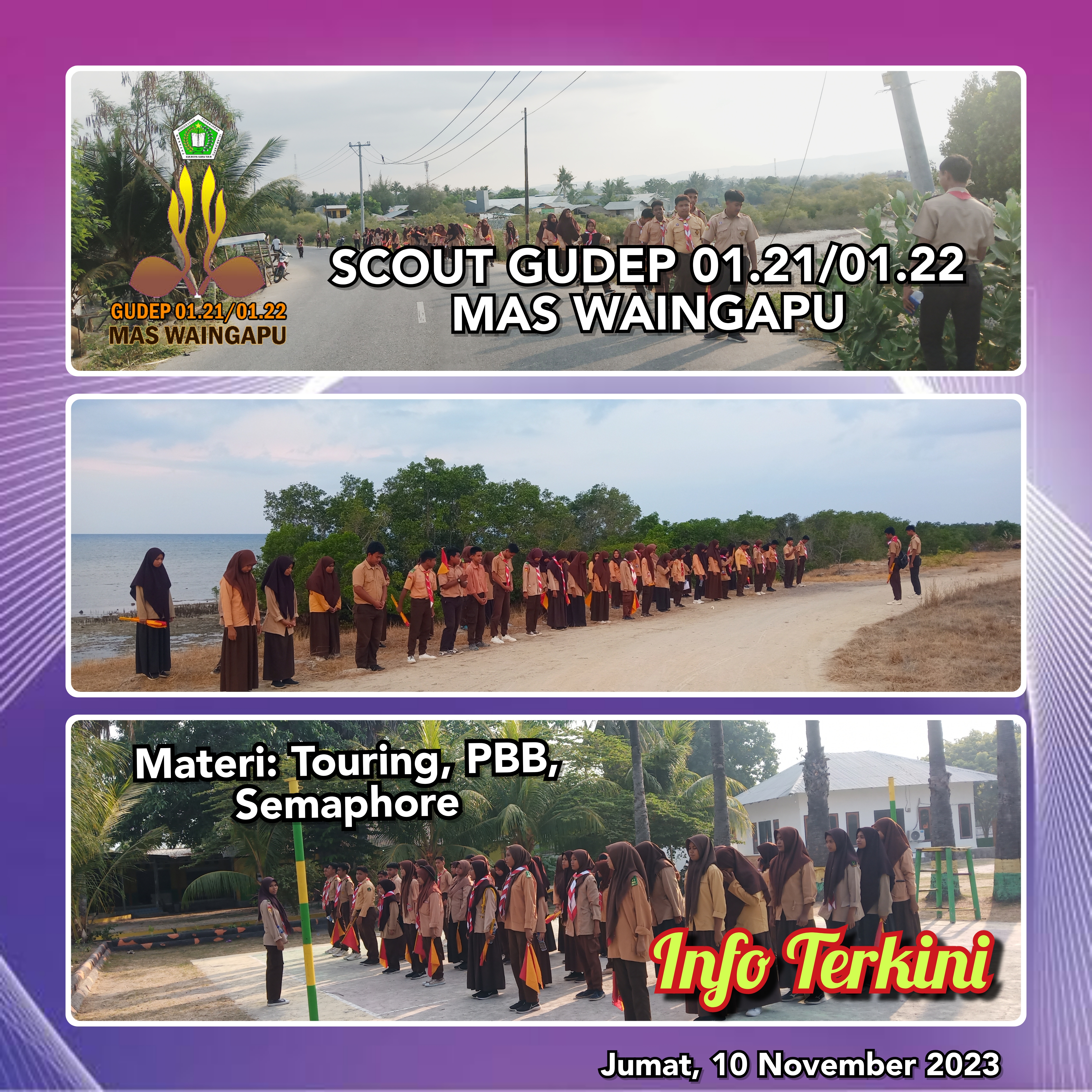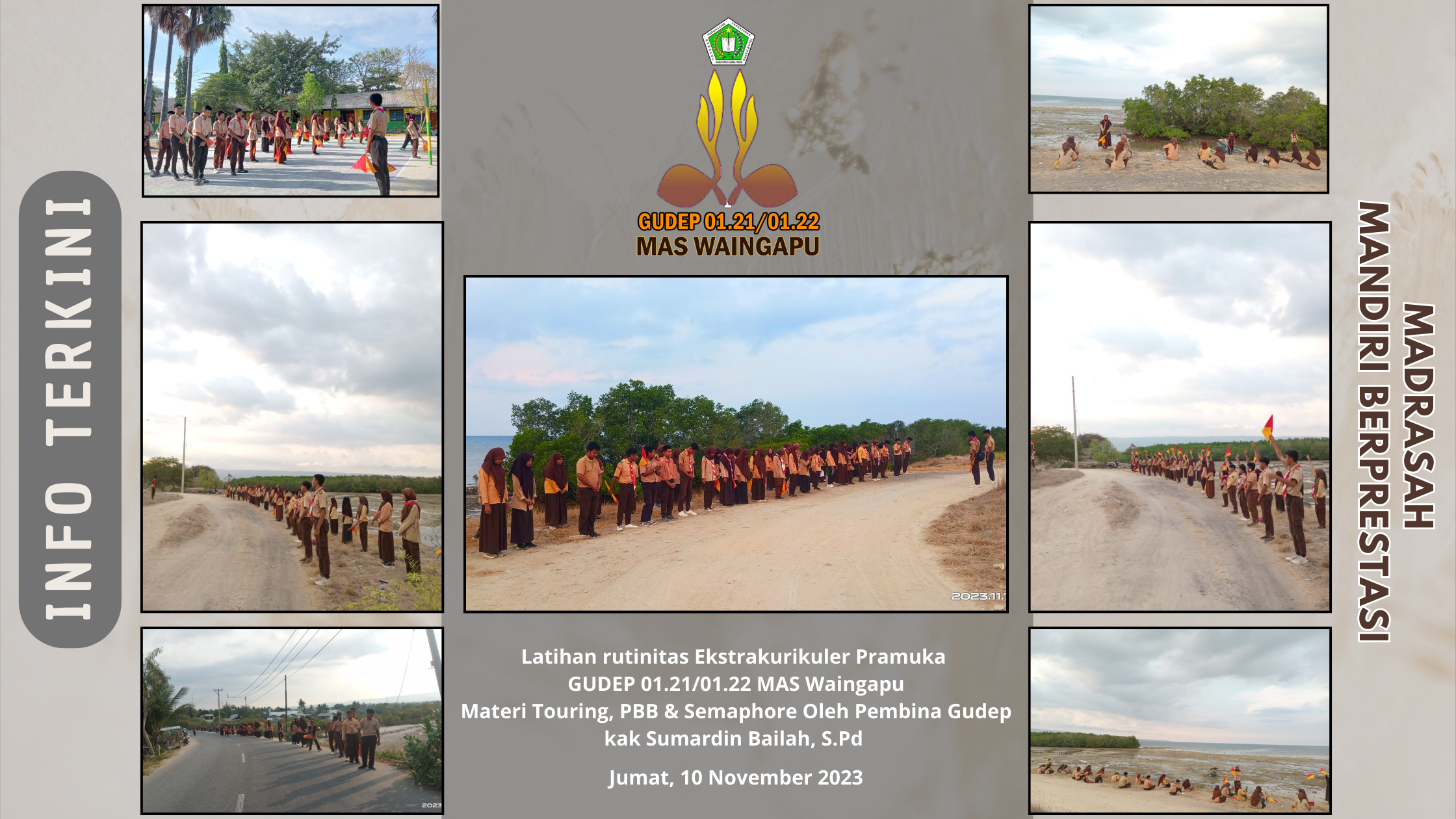Latihan Rutinitas Pramuka Gudep MAS Waingapu pada Jumat sore dipimpin oleh pembina GUDEP Kak Sumardin Bailah, S.Pd bersama dengan adik-adik sangga kerja.